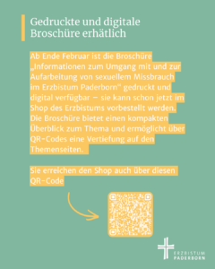 Umfassende Informationen zur Aufarbeitung im Erzbistum Paderborn sowie Kontakt-, Beratungs- und Hilfsangebote für Betroffene von sexualisierter Gewalt finden Sie unter: