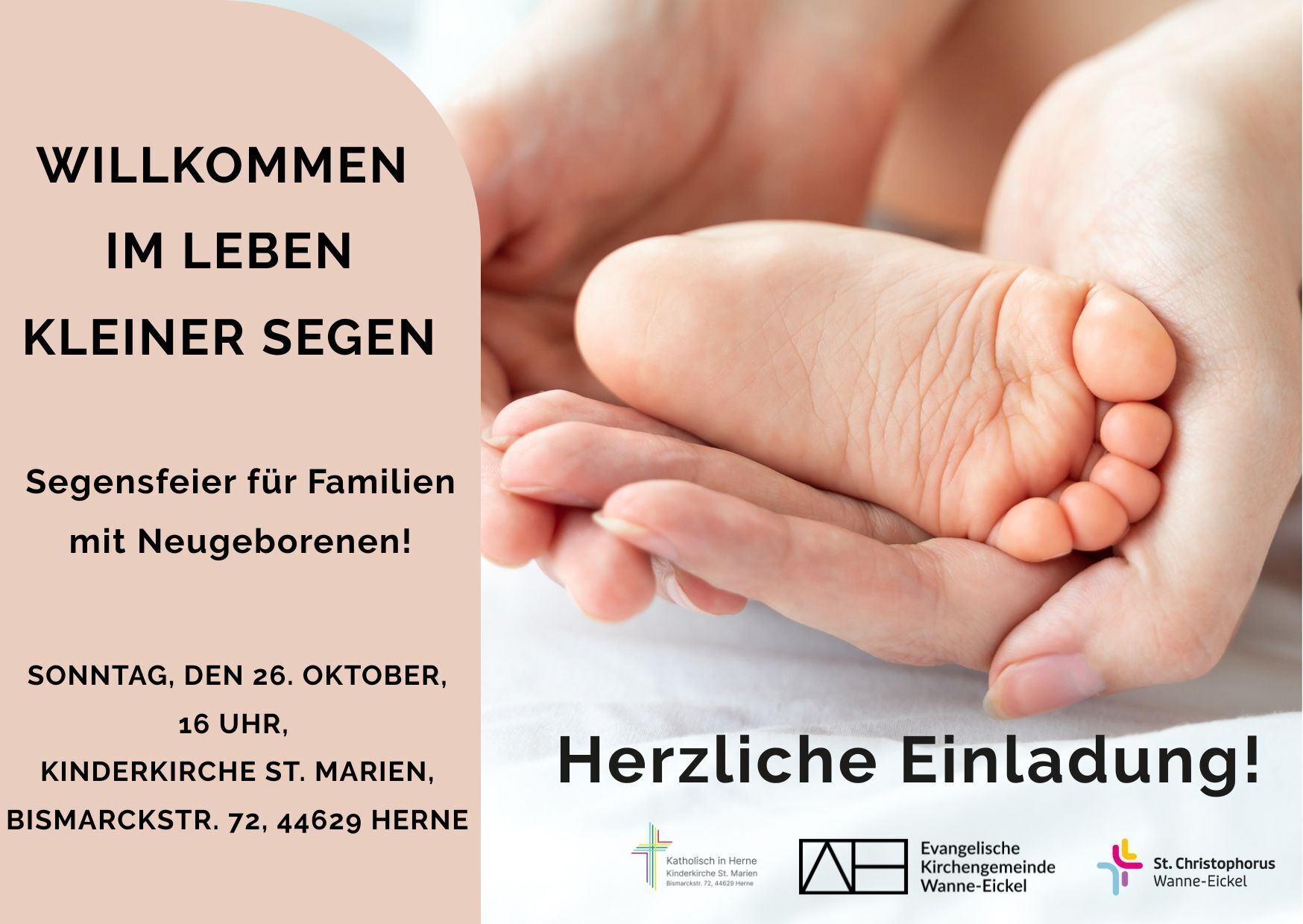 Unter dem Titel „Willkommen im Leben, kleiner Segen“ wird eine ökumenische Segensfeier in der neuen Kinderkirche in Herne Baukau angeboten. Darin werden den Babys und ihren Familien Gottes Segen zugesprochen, um sie für den gemeinsamen Weg und all das Neue, das vor ihnen liegt, zu stärken.